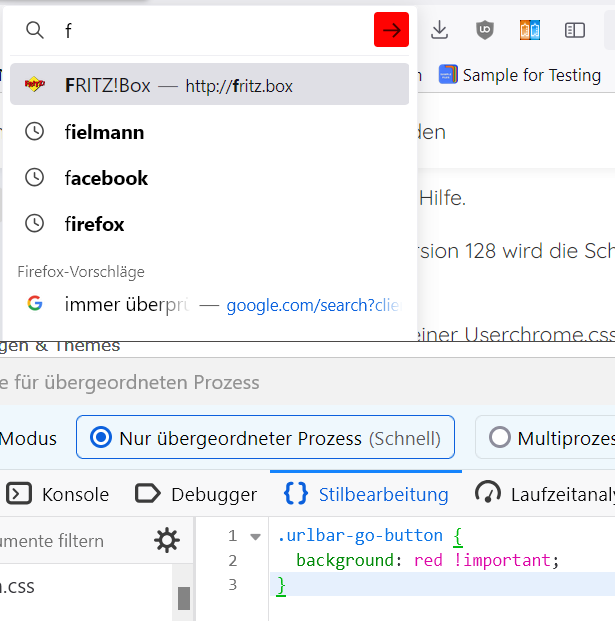 Das liegt wohl an der Regel display: none, die .urlbar-go-button standardmäßig mitgegeben wird.