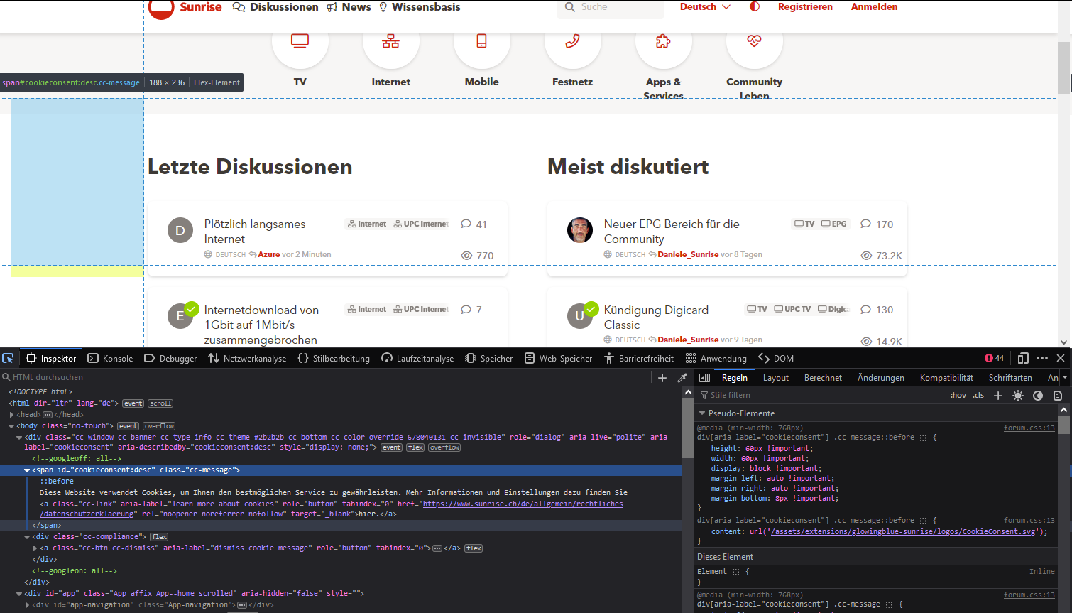 Beim Aufruf der Seite community.sunrise.ch habe ich folgenden Screen auf dem Smartphone: