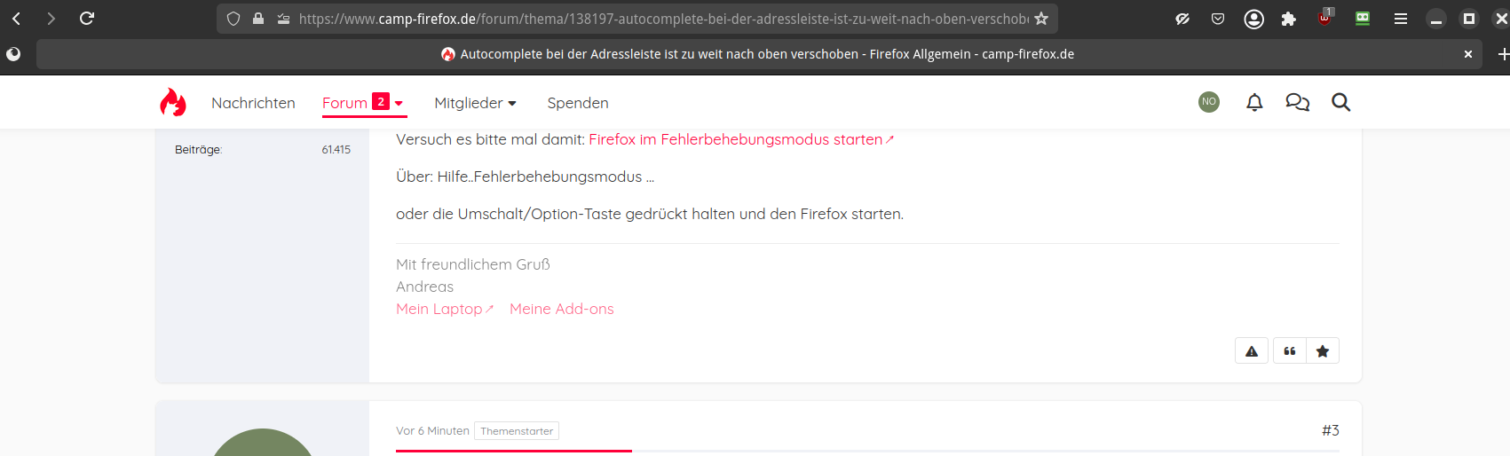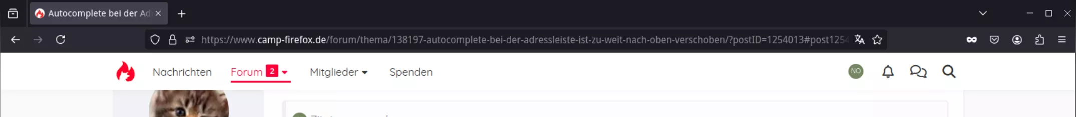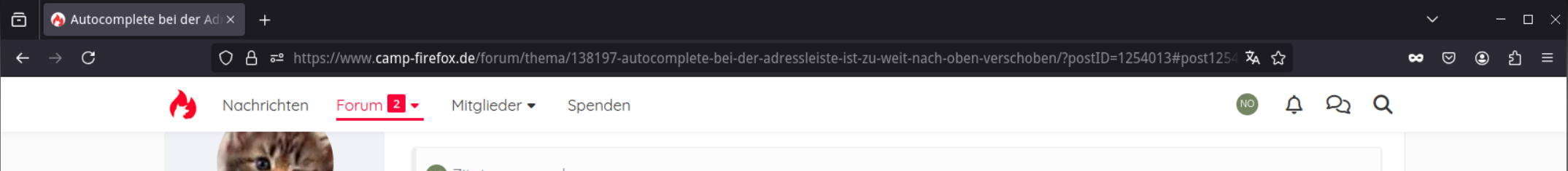 Autocomplete bei der Adressleiste ist zu weit nach oben verschoben
