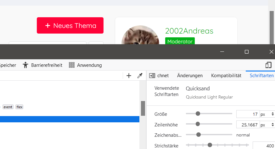 Nun, Andreas hat das auf der Forum-Website bemerkt, und wenn ich mich nicht irre, wird da Quicksand primär als Sanserif-Schrift verwendet. Demnach müsste Noto Sans in mindestens einem seiner CSS-Codes für die Forum-Website verwendet haben. Ich verwende diese Schrift ebenfalls für das Forum, aber bei mir sind alle Schriftschnitte vorhanden.