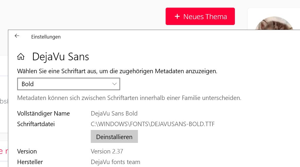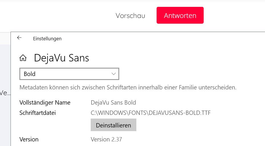 Jedenfalls weiß ich nicht, wieso der letzte Screenshot DeJaVu Sans in den Windows-Einstellungen zeigt. Denn die Schrift im Screenshot von Beitrag #59 ist ganz sicher Noto Sans und nicht DeJaVu Sans. Das erkennt man gut an den Buchstaben „a“ und „e“, die in beiden Schriften jeweils ganz anders aussehen.