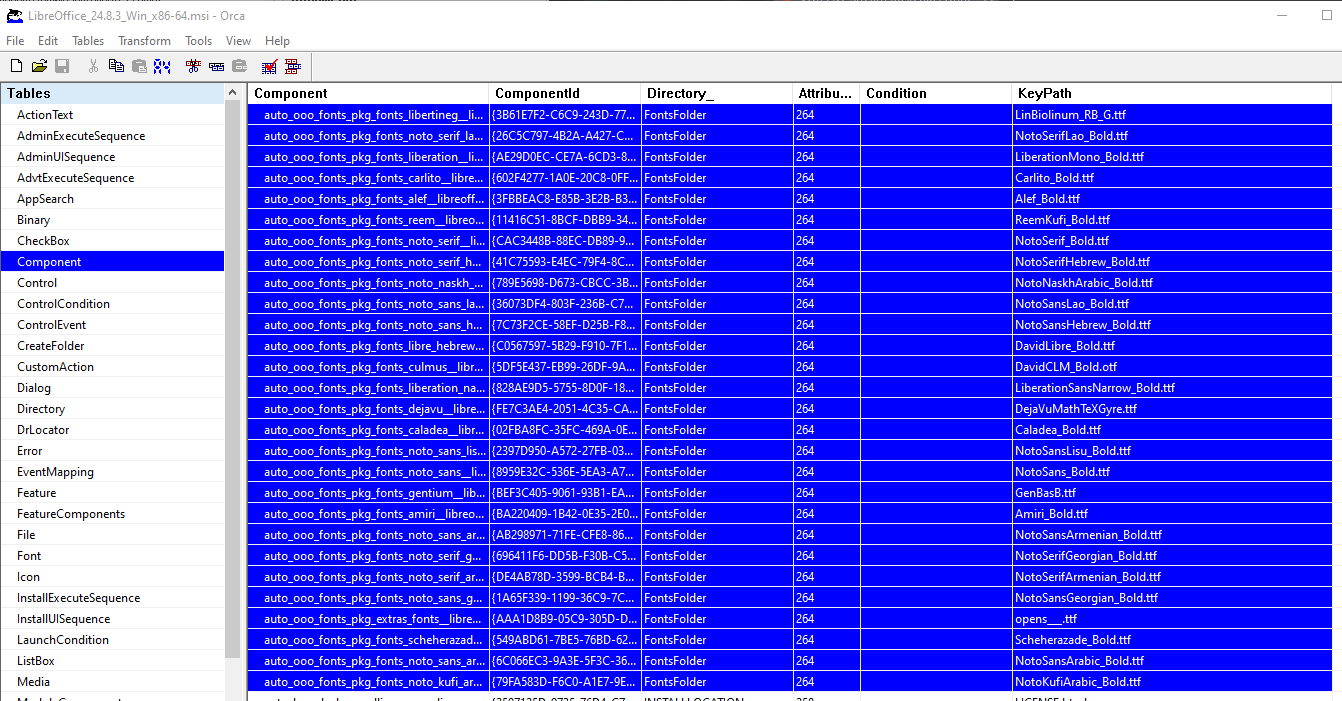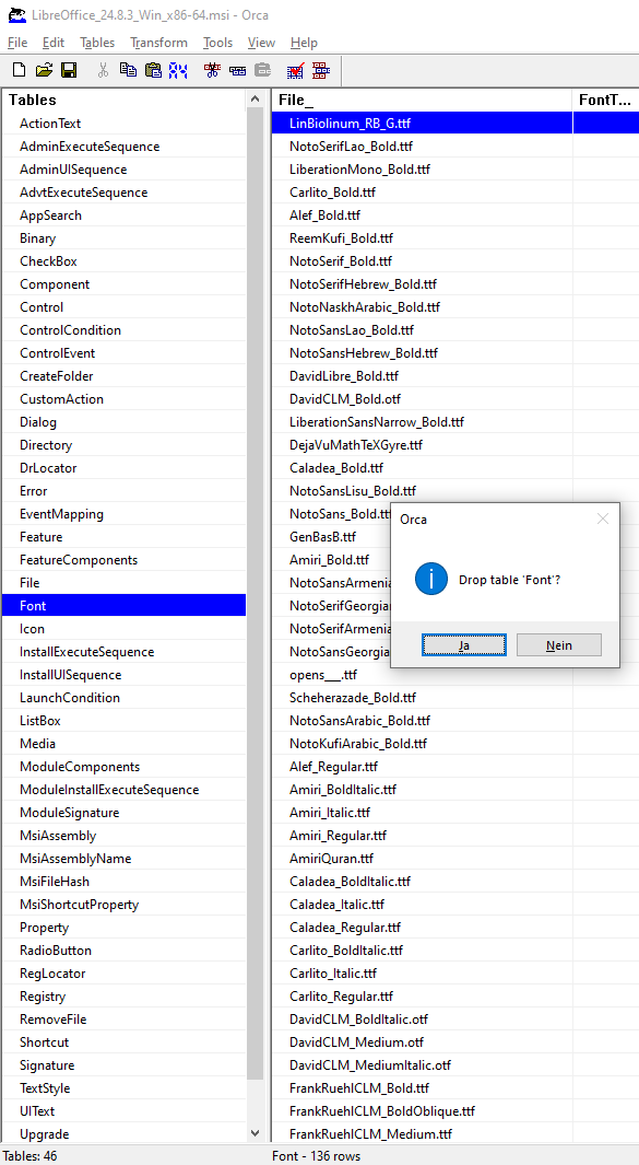 Es wird ein Unterordner \Fonts\ erstellt, umbenennen/löscht/whatever. Und dann das MSI in Zielpfad aufrufen, hat ca 22mb.