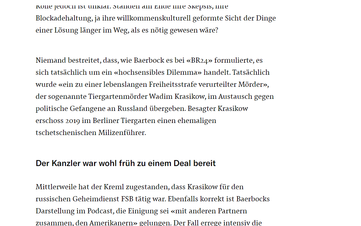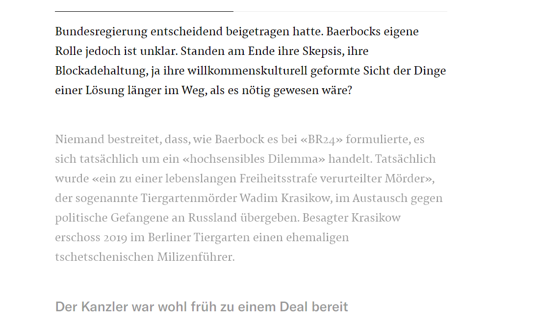 Blockierte Baerbock die Freilassung der politischen Gefangenen aus russischer Haft länger, als es nötig gewesen wäre? Das «Wall Street Journal» hat einen…