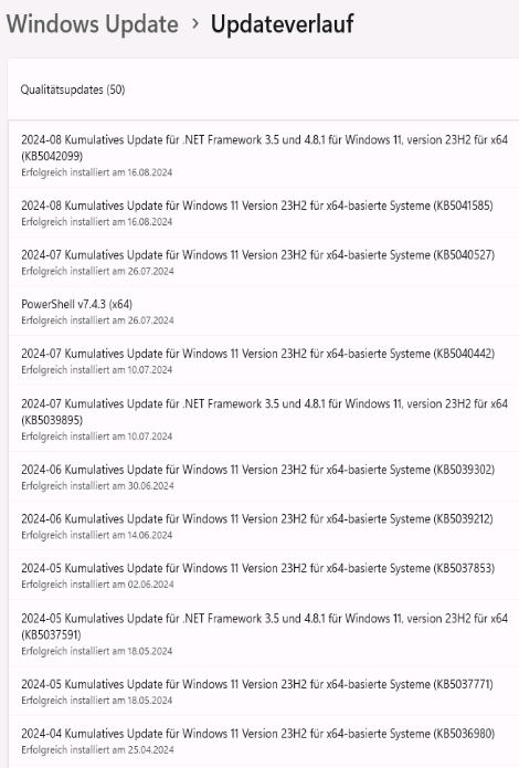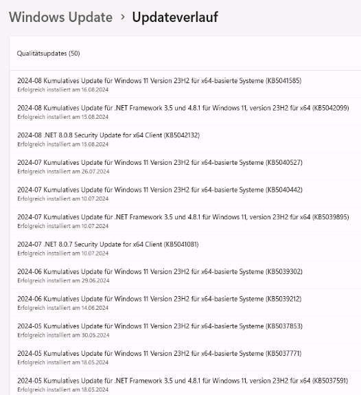 Sicherlich kann ich die Updates zwecks Test deinstallieren, um das genauer zu wissen. Aber den Aufwand habe ich bis jetzt gescheut;)