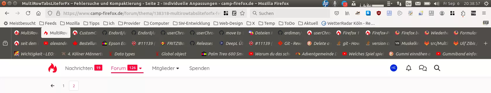 Ich kenne zahlreiche Webseiten, wo die relevante Unterscheidung erst im hinteren Teil der Titelleiste auftaucht, was vielleicht dann eben nur mir auffällt, weil ich es ja noch sehe. Wenn ich dann mehrere Tabs von der gleichen WebSite nebeneinander habe, habe ich da schnell einen Überblick, und da ich lange Zeit das Aris-CSS in Gebrauch hatte, war das dann auch in den dadurch langen Tooltips der Fall. Leider fressen diese CSS viel Performance, weshalb ich mich ja auf die Suche nach anderen MultiRowTabs-Lösungen gemacht habe.