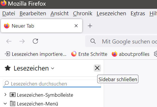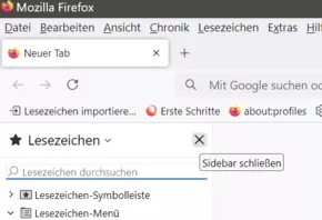 Wenn ich Firefox starte, öffnet sich gleichzeitig links die Lesezeichen-Sidebar.
