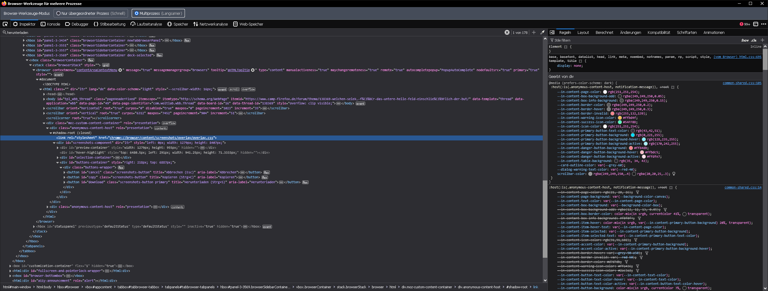 Dass man dafür die Browser-Werkzeuge benötigt, dürfte klar sein. Die sieht man ja auch in den anderen Screenshots. Entscheidend ist, dass „Multiprozess“ als Modus ausgewählt ist.