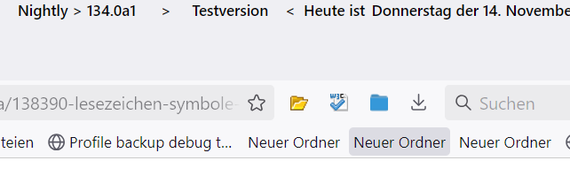 CSS.bookmark-item[container] .menu-iconic > .menu-iconic-left > image, .bookmark-item[container] > image { display: none !important; }Einzutragen ist der Code in die Datei userChrome.css