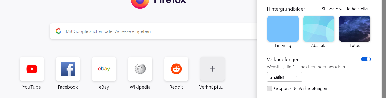 Hallo, bei mir ist auf der Startseite rechts neben den Symbolen ist das große "+" Auf einmal verschwunden, womit ich neue Seiten-Verknüpfungen hinzufügen kann. Wie bekomme ich es zurück (ohne Neuinstallation). Danke!