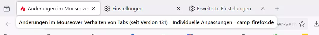 Änderungen im Mouseover-Verhalten von Tabs (seit Version 131)