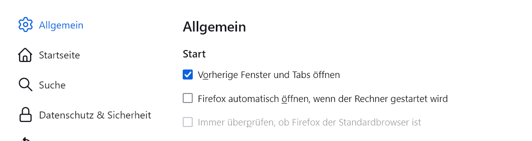 Jedes mal beim starten wird automatisch die Firefox Startseite, oder eine benutzerdefinierte Seite etc., geöffnet. Kann man dies nicht irgendwo deaktivieren? Ich will das nicht. ![]()