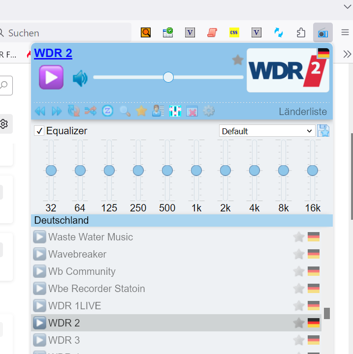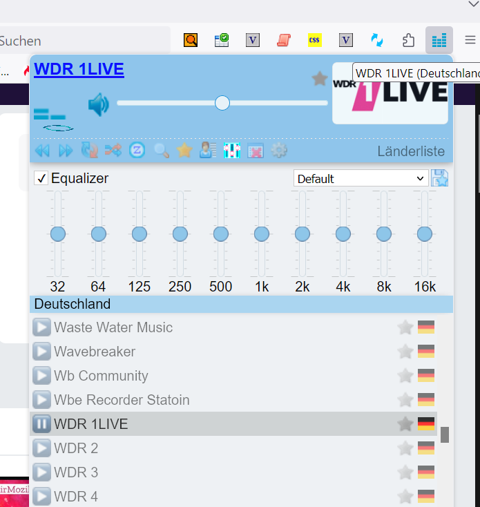 • In der Erweiterung bearbeiten kann man das wohl nicht. Aber man kann ja eigene Stationen anlegen (4. Symbol von rechts mit der Frau?). Die Seite mit den Webradio-Links des WDR ist hier: