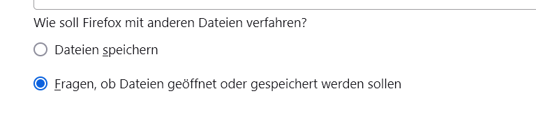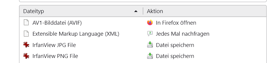Wenn ich ein PNG-Bild oder eine PDF in FF öffnen möchte, geht das nicht mehr, die Option im Dialog ist ausgegraut.