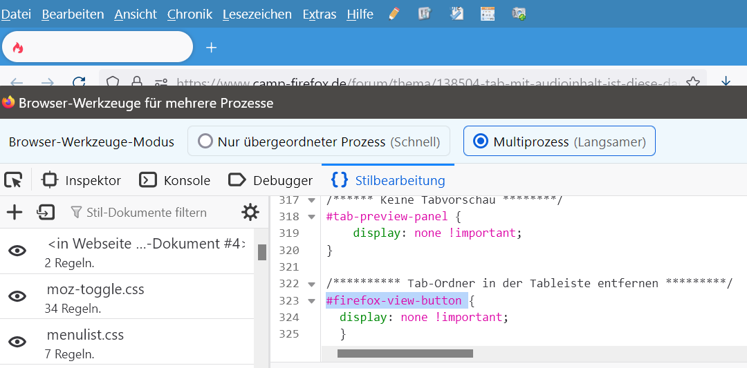 der Tab-Ordner, links außen, ist bei Dir zu sehen, der ist aber auch ausgeblendet - siehe letzten CSS-Code, der Datei.
