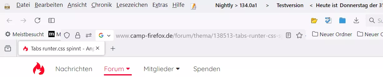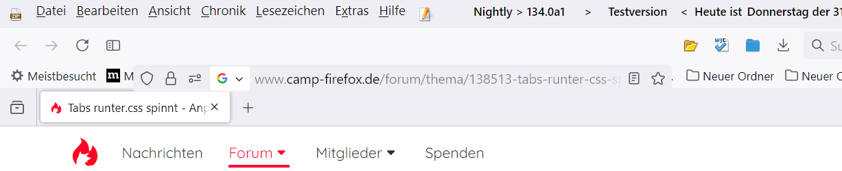 Das passiert seit dem vorletzten Update in Nightly, auch wenn das Script Tabs runter.uc.js genutzt wird.