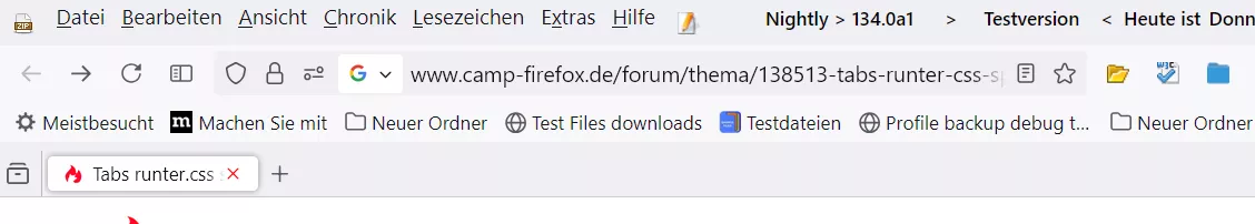 • Habe noch mal nachgesehen, die Adressleiste ist jetzt in die Lesezeichen hineingerutscht, war nicht gleich aufgefallen, weil ich die Lesezeichen nur auf der Startseite von Firefox anzeigen lasse. Ich habe eine CSS-Datei für die Adressleiste, muss da mal nachschauen. Ach ja, in einem frischen Profil ist alles in Ordnung.