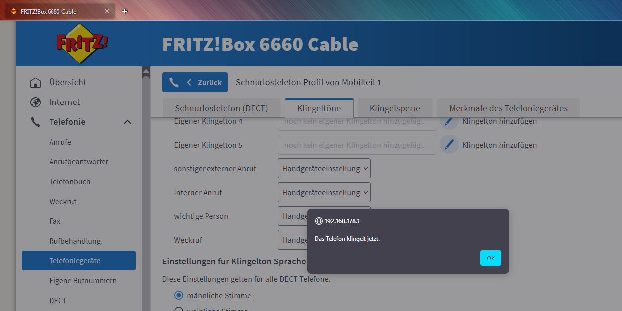 Alle Meldungen gelöscht und dann den Button zum Testen des Telefons gedrückt.