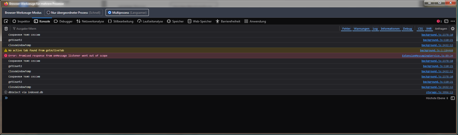 3. Alle Erweiterungen deaktiviert. => Fehler noch vorhanden.