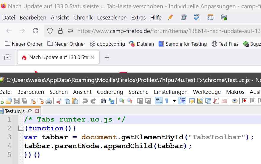 Nach Update auf 133.0 Statusleiste u. Tab-leiste verschoben
