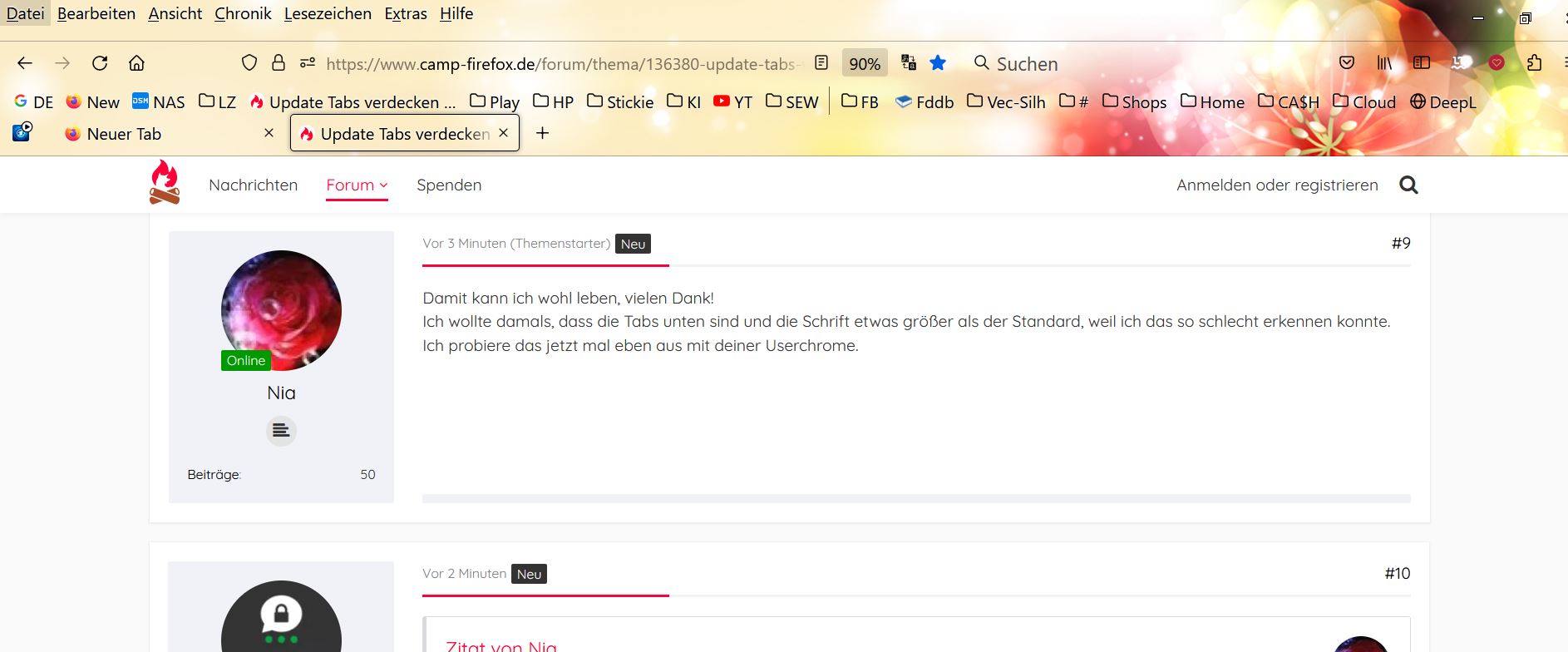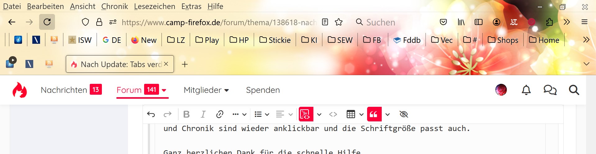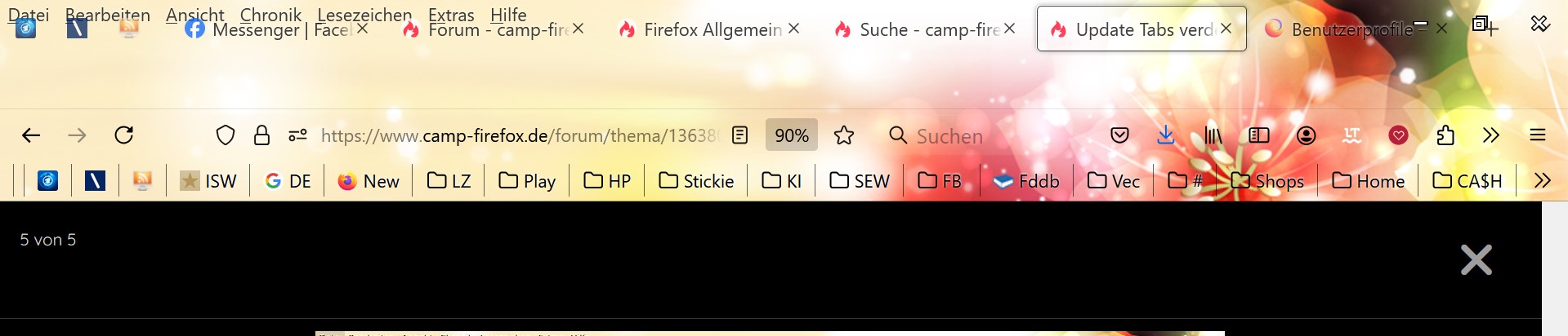 So, das ist sie, siehe Anhang. Ich bin schon wunschlos glücklich. Das Pluszeichen funktioniert auch wieder und auch schließen kann ich Tabs wieder ganz normal.