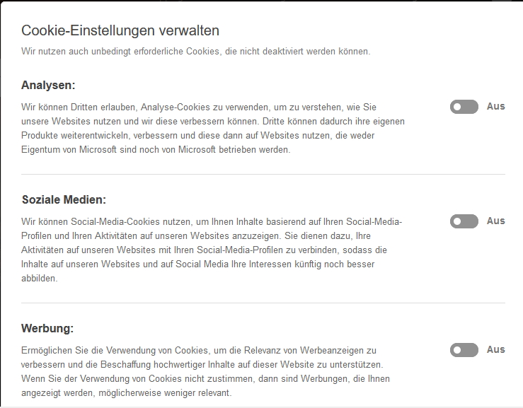 es geht um das lästige Aufpoppen des Fensters: Cookie-Einstellung verwalten.