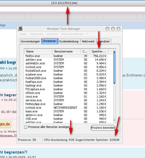 gero: Das System ist ausreichend. 512 MB RAM reichen sonst, außer bei diesem Problem. Wenn Firefox über 300.000 K geht, dann geht nichts mehr. Ich zwinge mich jetzt immer nur wenige Tabs zu öffnen, damit ich das Problem vermeide. Die Möglichkeit die Anzahl der Tabs zu begrenzen wäre sehr praktisch. Keine Ahnung wieso es noch nicht geht.