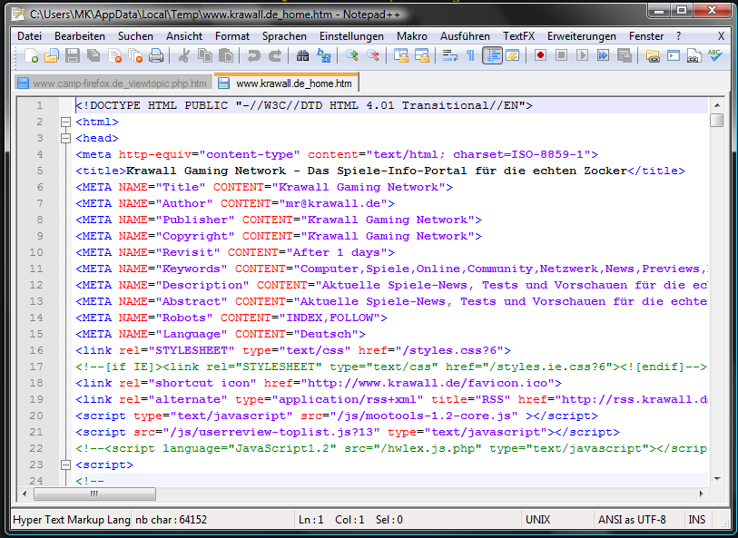 Übringens ich nutze den Nodepad2 v3.0.20 von hier: http://www.flos-freeware.ch/notepad2.html