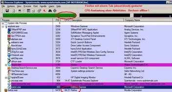 Was mich am meisten verwunderte, war die Tatsache, dass nach Schließen von FF die CPU immer noch teilweise zu 100% ausgelastet wird.