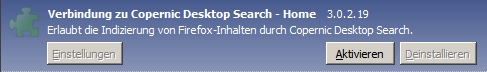 Coperinic Desktop Search will ich natürlich nicht deinstallieren. Dafür habe ich mich zu sehr an dieses Programm gewöhnt und es schätzen gelernt, wenn ich mal wieder nicht wußte, wo ich welches Dokument abgelegt habe. :roll: