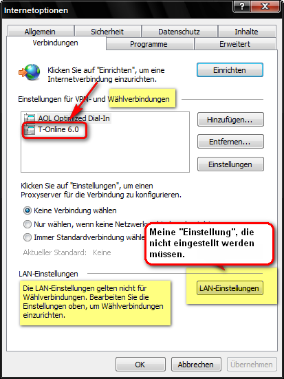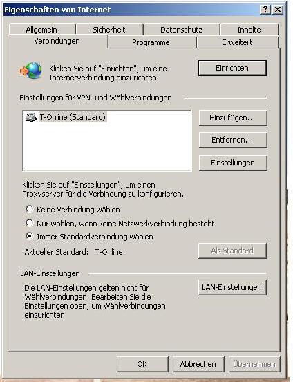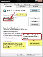 Nun ist die Frage, wie Du überhaupt eine INet-Verbindng herstellst. Über eine Wählverbindung, wie hier am Beispiel des IE8 dargestellt