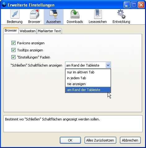 Momentan ist auf jedem Tab ein rotes Kreuz drauf. Leider hab ich das Problem, daß ich immer mal wieder auf dieses Kreuz komme und somit den Tab schliesse, obwohl ich es gar nicht will.