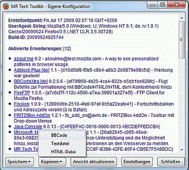 und damit Du dich da nicht durch die entsprechenden Ordner bzw ID´s der Erweiterungen durch klicken mußt...., nutze die Erweiterung Extension List Dumper :: Add-ons for Firefox
