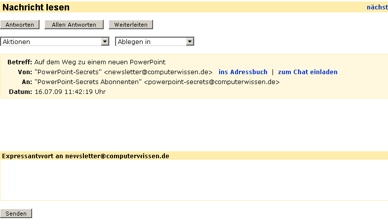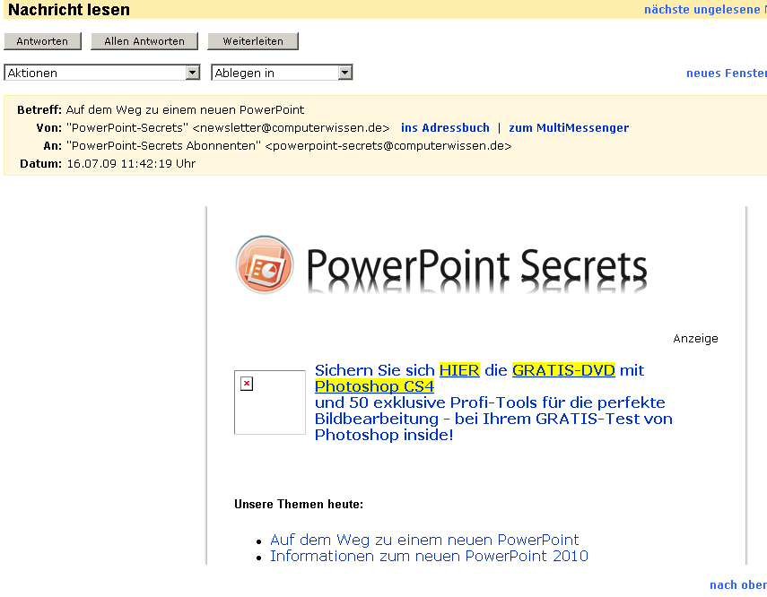 Die Anhänge weiter oben zeigen eine dieser Mails: in HTML bei IE, ohne HTML bei Firefox 3.5.