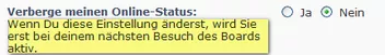 Bei welcher Einstellung wird hier im Forum angezeigt, dass ich "online" bin?
