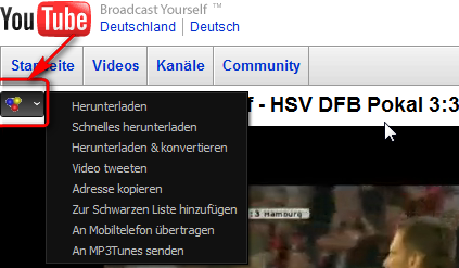 Wenn ich da einfach nur drauf klicke, kommt zunächst, wie du bereits richtig schreibst die Abfrage das Verzeichnis. Beginnt dann der Downloadvorgang, lädt er mir allerdings zwei Dateien auf einmal herunter. Einmal das Video (als *.mp4-Datei) und einmal eine, welche keine Dateiendung hat und die immer mit _videoplayback endet. Wenn ich mit der rechten Maustaste auf dieses Symbol klicke, dann ich die Auswahl beeinflussen und mir nur die *.mp4-Datei auswählen.