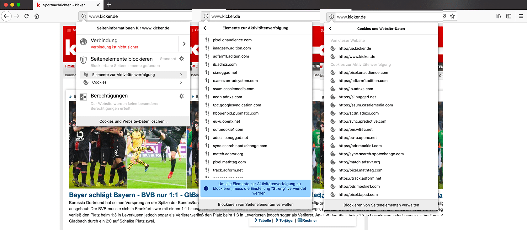 Das neue Trackin-Protection-Panel ist jetzt in Nightly 70 aktiviert und zeigt jetzt genau was blockiert wird, inklusive Report-Funktion.