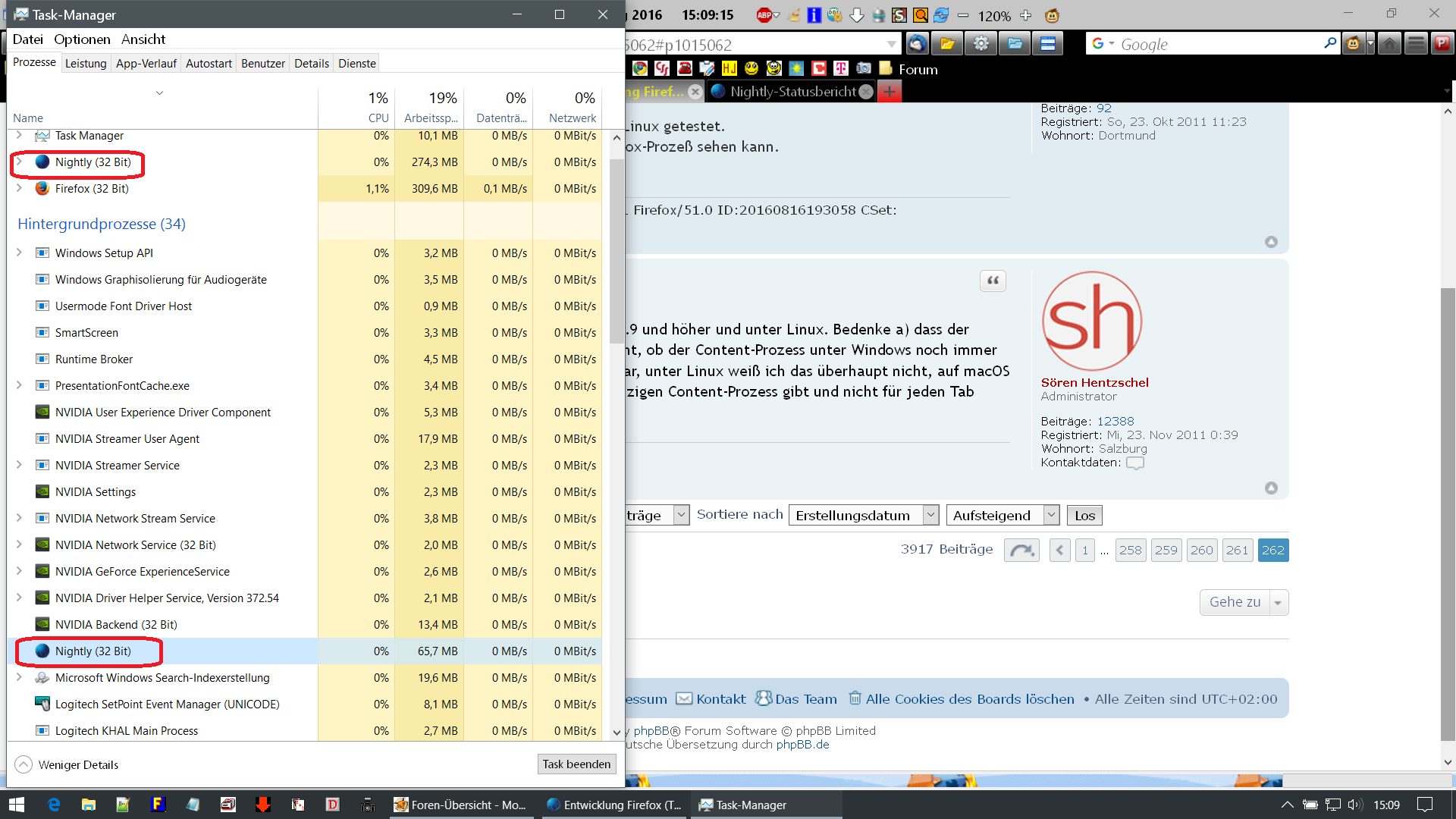 Dabei viel mir auf das, obwohl e10s aktviert ist, ich nur einen Firefox-Prozeß sehen kann.