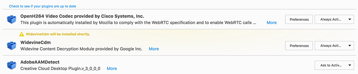 Damit sich bei zukünftigen Support-Anfragen niemand wundert und unerwünschte Software vermutet, Widevine gehört ab Version 48 zu Firefox dazu (nur Windows und OS X, nicht Linux).