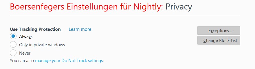 Ich nehme an, dass es dort an den neuen Tracking-Einstellungen liegt. Die sind gestern in Firefox gelandet.