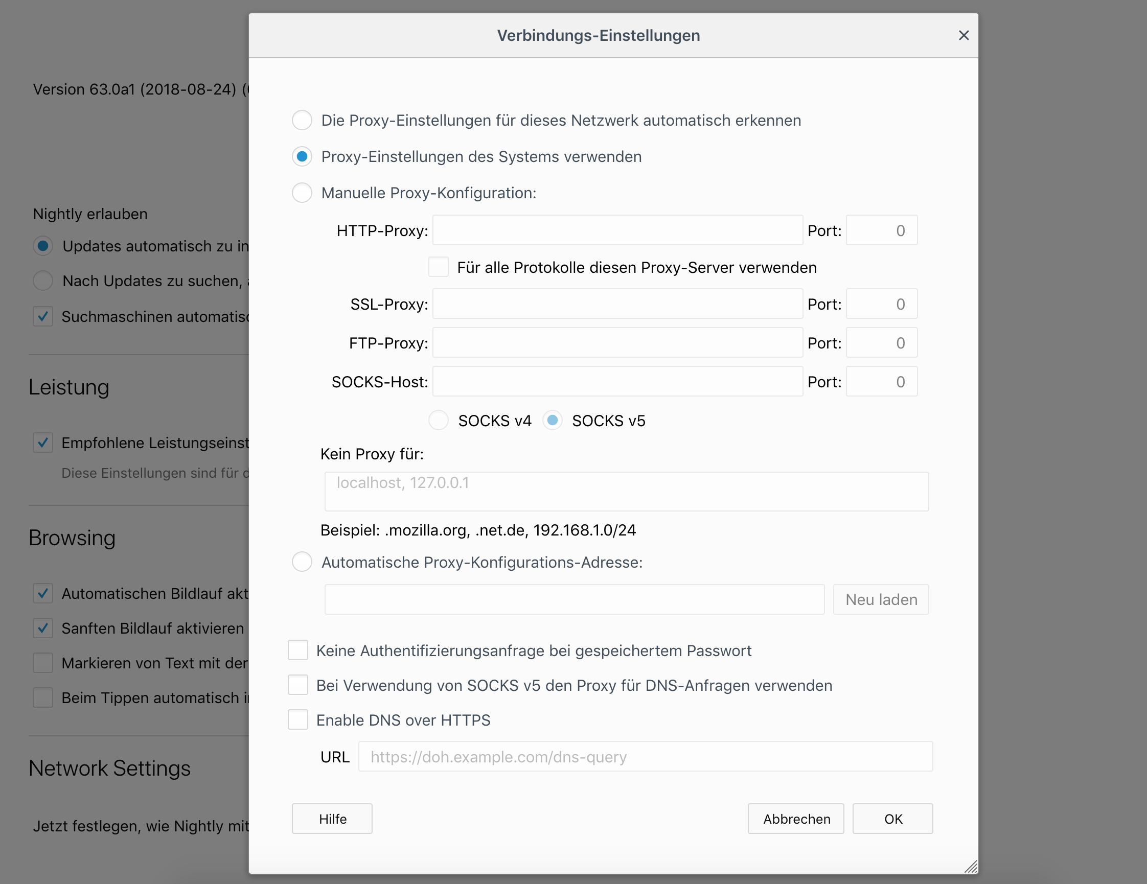 Für DNS over HTTPS hat Firefox nun eine sichtbare Einstellung.