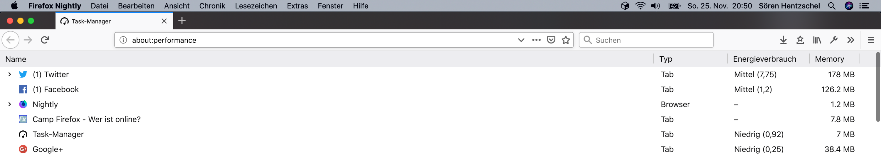 Der in Firefox seit Version 64 integrierte "Task-Manager" zeigt neben dem Energie-Verbrauch von Tabs und Erweiterungen nun auch den Speicherverbrauch an.