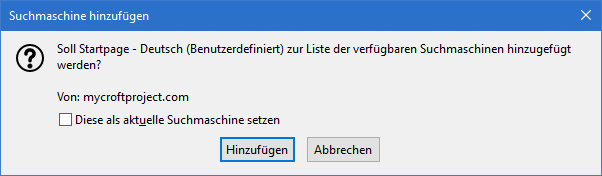 Hier noch etwas über was ich eher zufällig gestolpert bin, als ich unter der aktuellsten Nightly eine benutzerdefinierte Suchmaschine von der Seite mycroftproject.com oder auch von der AMO-Seite installieren wollte: