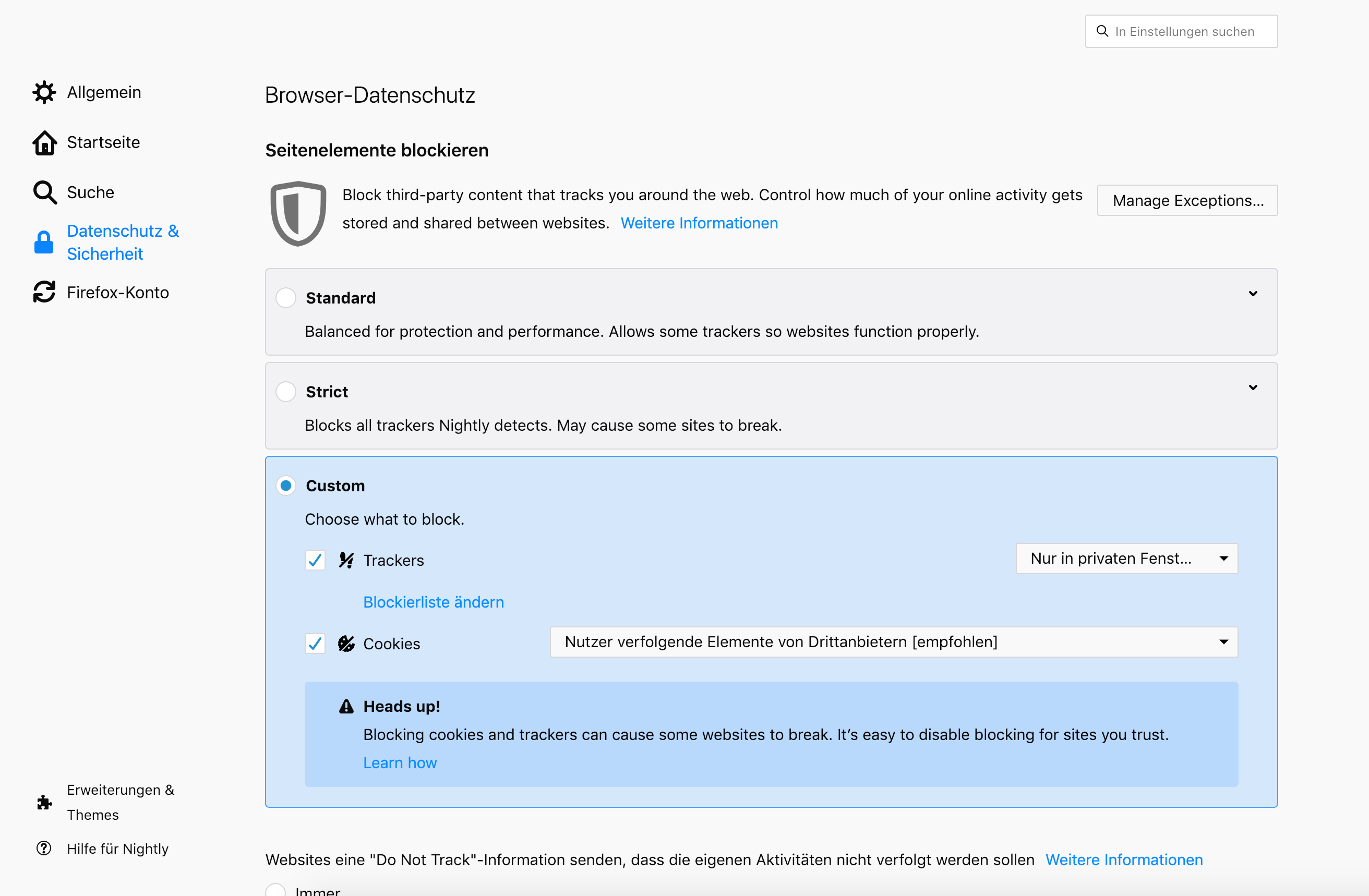 Die neuen Datenschutz-Einstellungen für Firefox 65 sind nun implementiert.