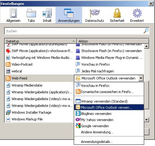 ich habe gerade auf Winamp 5.57 upgedatet und jetzt habe ich im Firefox 3.5.6 die RSS Feeds mit Winamp verknüpft.