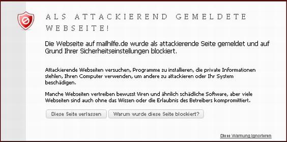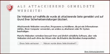 Klickt man auf "Diese Warnung ignorieren" und dann auf "Das ist keine attackierende Website" kommt eine englischsprachige Seite.