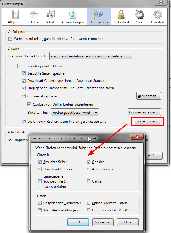 Cookies sperren