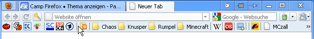gute Vorschläge, aber ich mag's eigentlich so wie's jetzt ist - für mich persönlich ein guter Kompromiss zwischen Kompaktheit und Nicht-jeden-Kram-ausblenden oder sich-einschränken-müßen (zb an Lesezeichen) ^^. Außerdem steh ich auf Icons, ich würd eher den Text von Ordnern entfernen und stattdessen jedem Ordner ein individuelles Ordner-Icon spendieren (so wie bei dem Ordner mit dem kleinen RSS-Icon auf dem Screenshot, in dem ich Feeds hab) - das spart sogar noch mehr Platz. :D