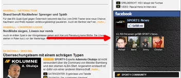 Ich war auf "Sport1.de" und klickte innerhalb eines Berichtes auf einen markierten Textbereich, der mich innerhalb von "Sport1" weiterleiten sollte....