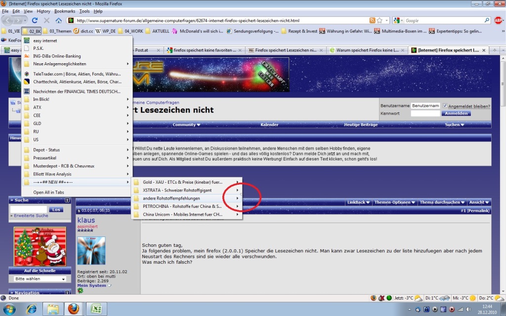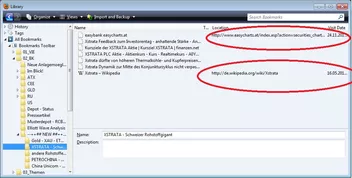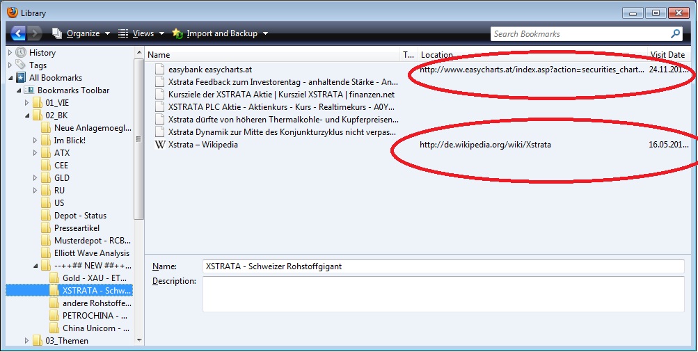Da es gestern etwas spaeter geworden ist, wollte ich alle meine Tabs auf einmal zu den Favoriten hinzufuegen. Ganz normaler Vorgang : "bookmark all tabs" Hat auch wunderbar funktioniert. Aufgrund dessen, dass es schon einmal Schwierigkeiten gab bereits abgespeicherte Seiten wieder aufzurufen, hab ichs auch gleich probiert. (Neues Fenster geoeffnet -> soeben gespeicherte Linx wieder aufgerufen -> kontrolliert und alles war da)