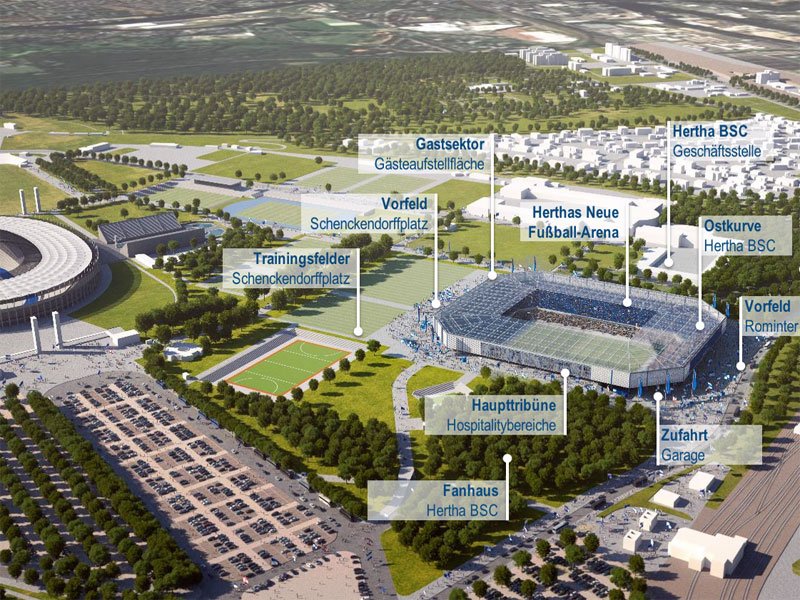 • Die Stadt Berlin, die auch Eigentümer des Olympiastadions ist, will unbedingt, dass Hertha im Olympiastadion bleibt und lieber das Olympiastadion umbaut als eine neue Arena zu bauen. Hertha ist der Haupt-Mieter vom Olympiastadion und zahlt wie gesagt über fünf Millionen Euro Miete pro Jahr. Wenn das wegfällt, ist die Sorge, dass der Betrieb des Olympiastadions nicht mehr wirtschaftlich ist.
